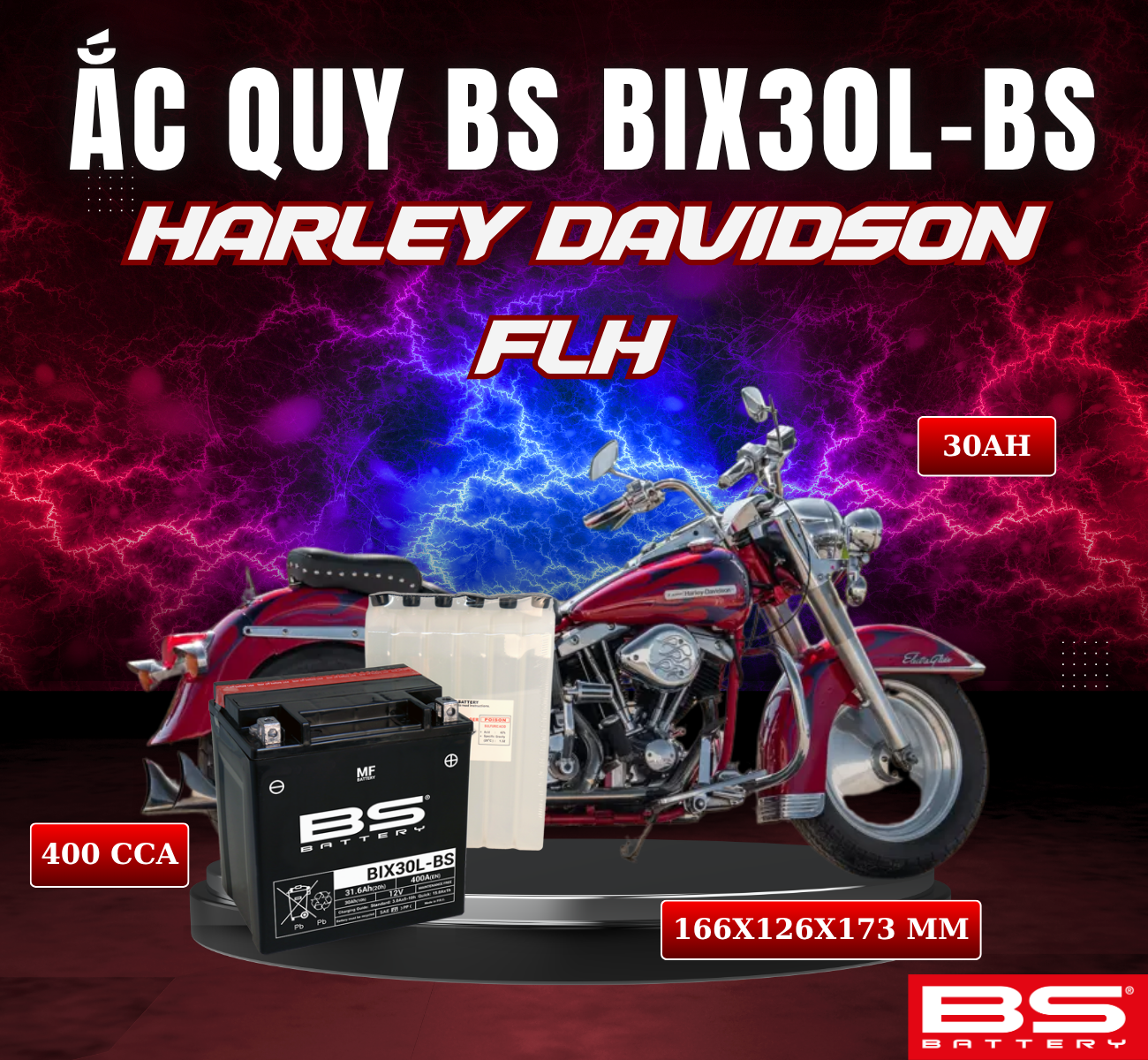 ẮC QUY BS BIX30L-BS 400CCA HARLEY DAVIDSON FLH (166x126x173 mm)