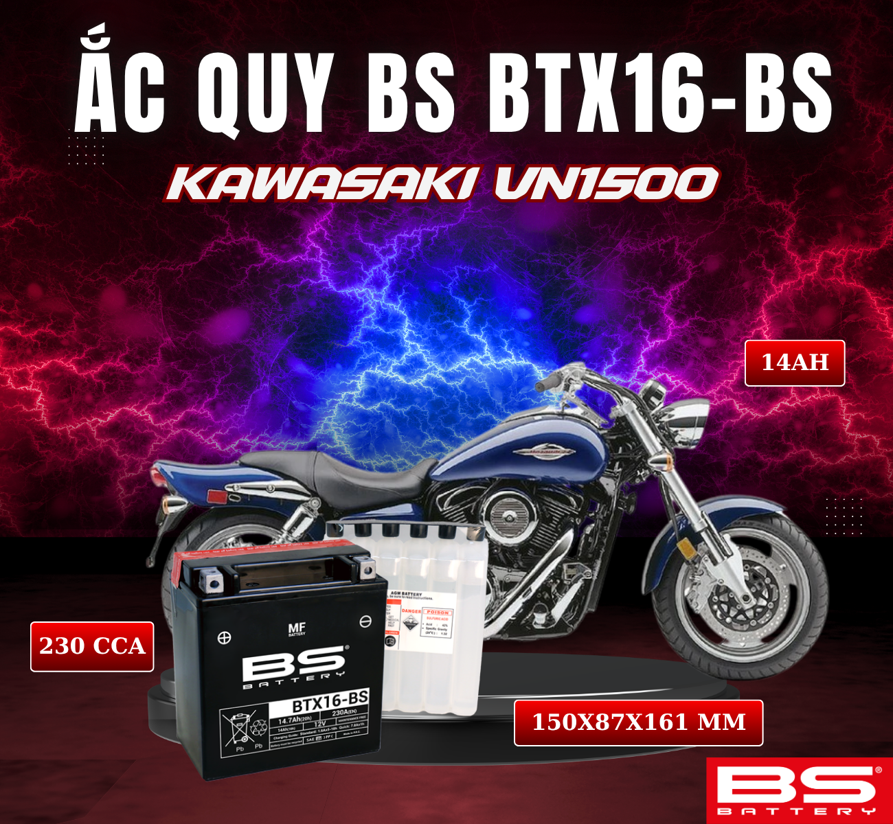 ẮC QUY BS BTX16-BS 230CCA KAWASAKI VN1500 (150x 87x 161mm)