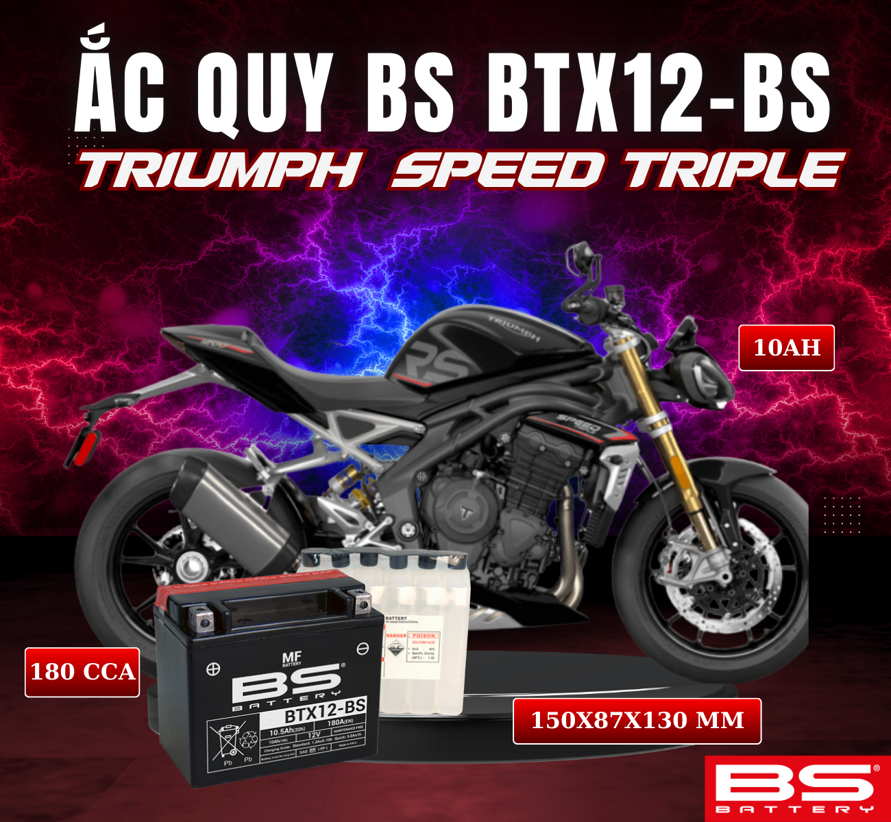 BÌNH ẮC QUY BS BTX12-BS 180CCA TRIUMPH SPEED TRIPLE (150x87x130 mm)