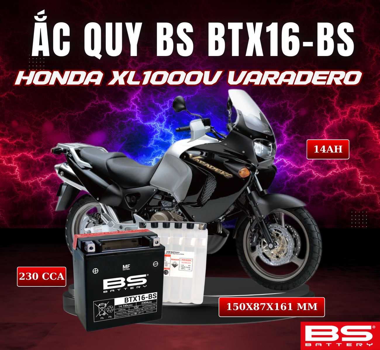 BÌNH ẮC QUY BS BTX16-BS 230CCA HONDA XL1000V VARADERO (150x 87x 161mm)