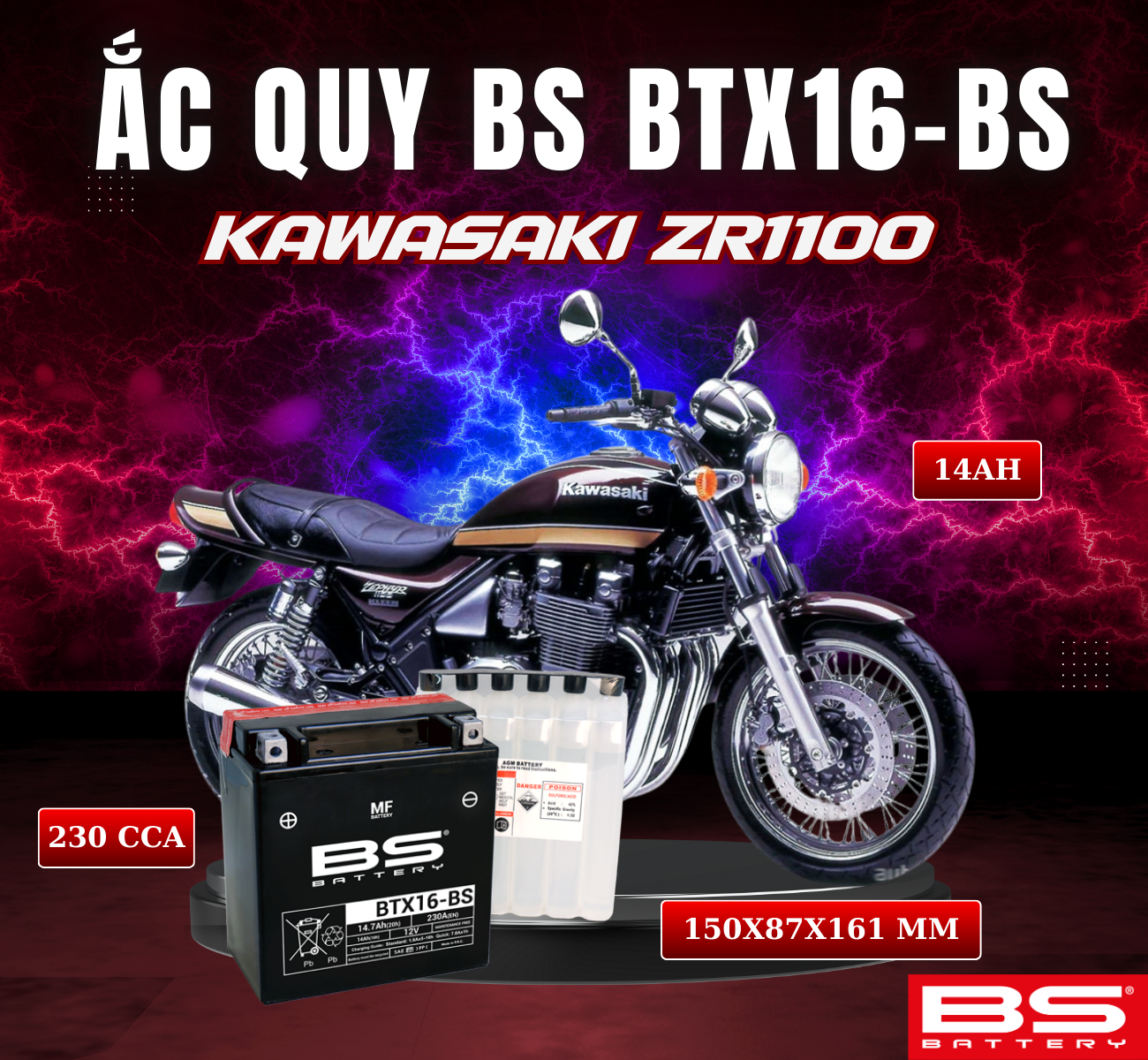 BÌNH ẮC QUY BS BTX16-BS 230CCA KAWASAKI ZR1100 (150x 87x 161mm)