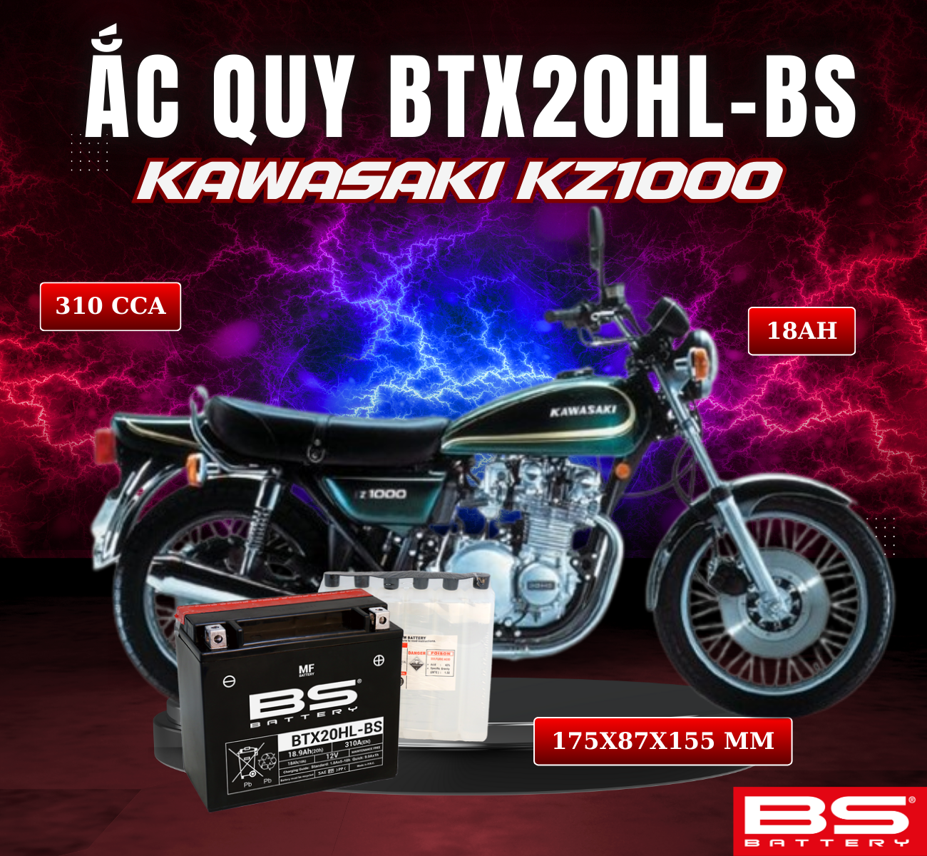 BÌNH ẮC QUY BS BTX20HL-BS 310CCA KAWASAKI KZ1000 (175x87x155 mm)