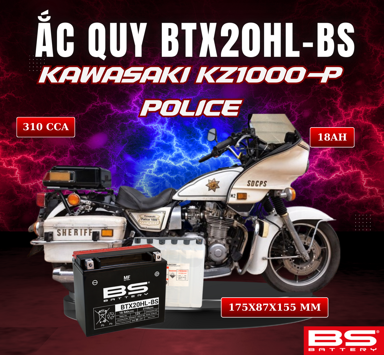 BÌNH ẮC QUY BS BTX20HL-BS 310CCA KAWASAKI KZ1000-P POLICE (175x87x155 mm)