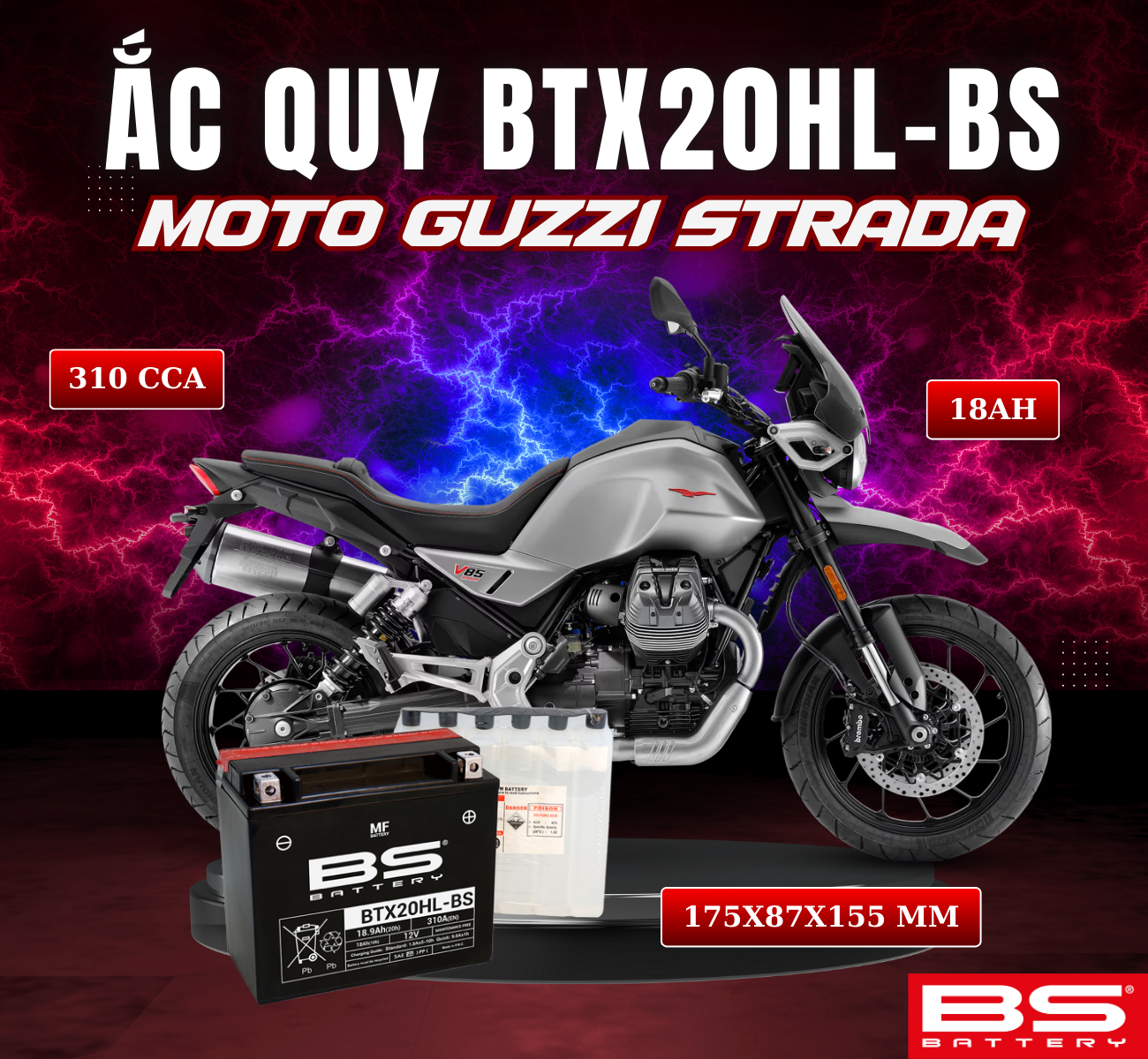 BÌNH ẮC QUY BS BTX20HL-BS 310CCA MOTO GUZZI STRADA (175x87x155 mm)