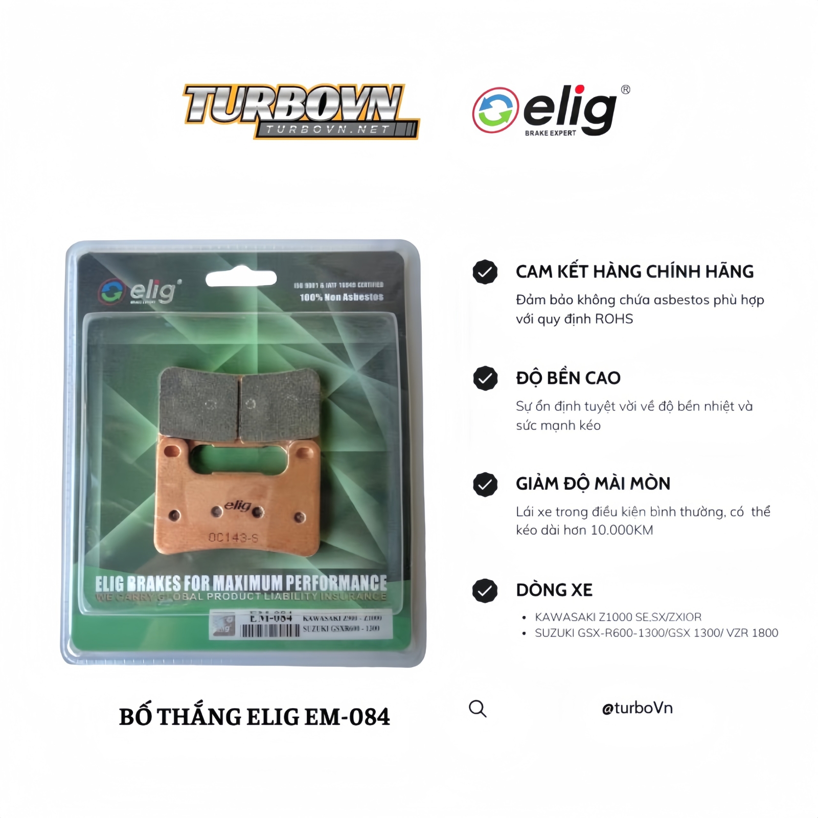 Bố thắng Elig được sử dụng cho các loại xe: SUZUKI GSX-R600-1300/GSX 1300/ VZR 1800