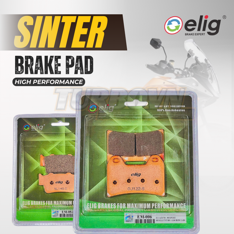 Bố thắng ELIG EM Sinter là dòng sản phẩm cao cấp của thương hiệu Elig, thiết kế dành cho các dòng mô tô phân khối lớn và sử dụng điều kiện khắc nghiệt. Được sản xuất theo công nghệ thiêu kết (sintering), sản phẩm nổi bật nhờ khả năng chịu nhiệt, độ bền, và hiệu quả phanh tối ưu