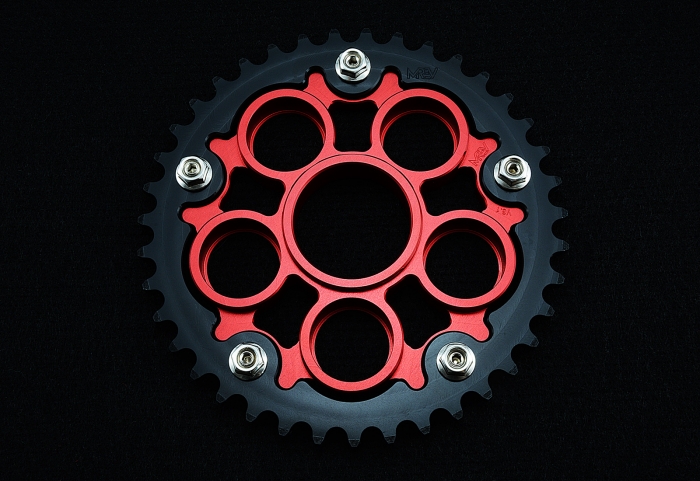 Sản phẩm dĩa tải nhôm MREV dành cho dòng xe Ducati Hypermotard 796 được MREV sản xuất qua gia công CNC siêu chính xác từ vật liệu nhập khẩu nguyên khối Ultralumin 7000 series.