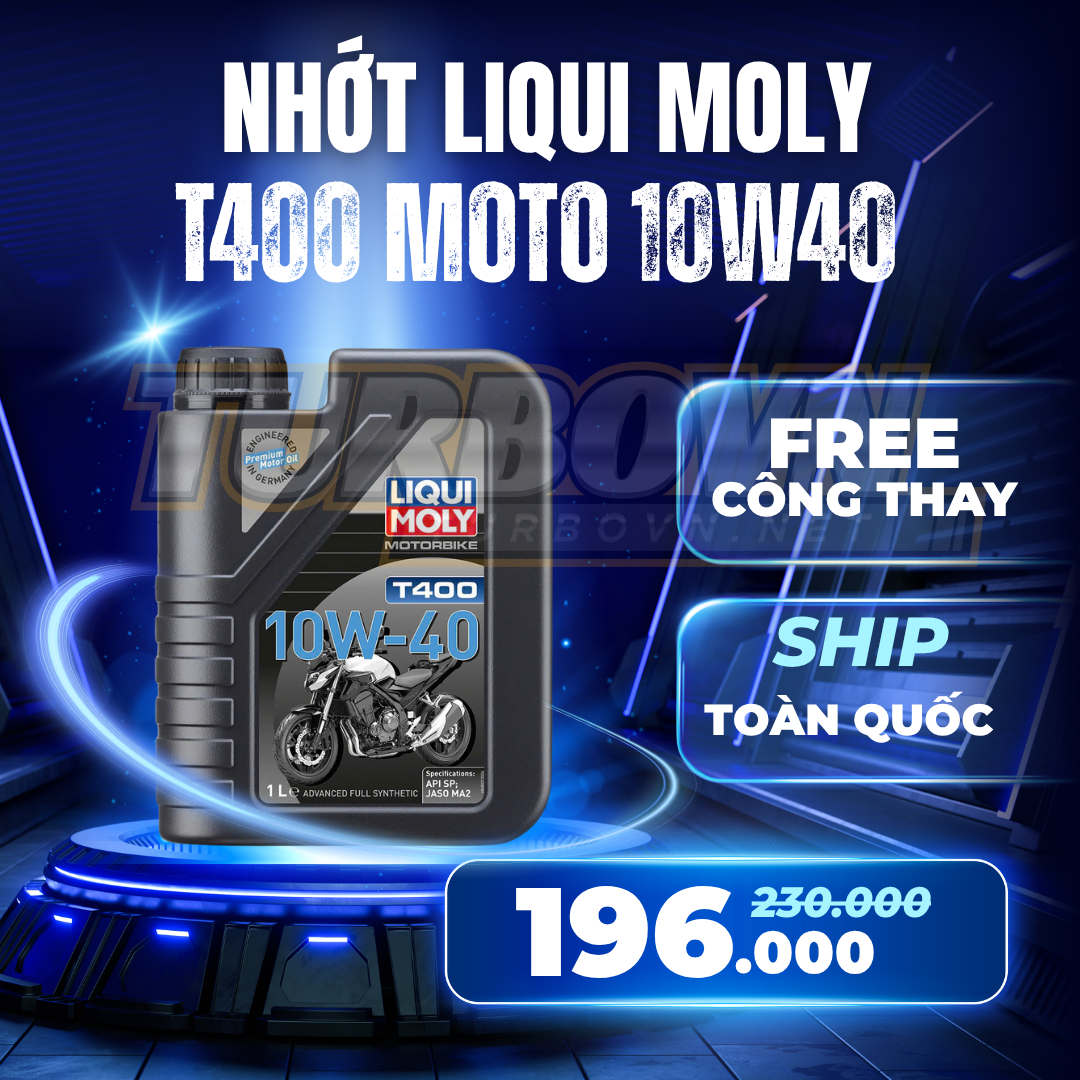 Motorbike T400 10W-40 Liqui Moly là sản phẩm tối ưu cho động cơ 4 thì làm mát bằng không khí và nước. Dành cho động cơ có ly hợp khô và ly hợp ướt.